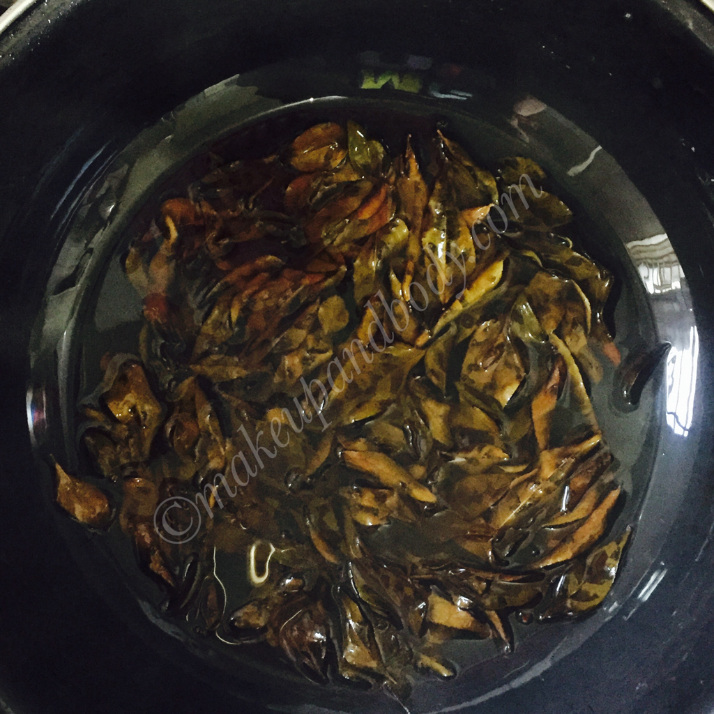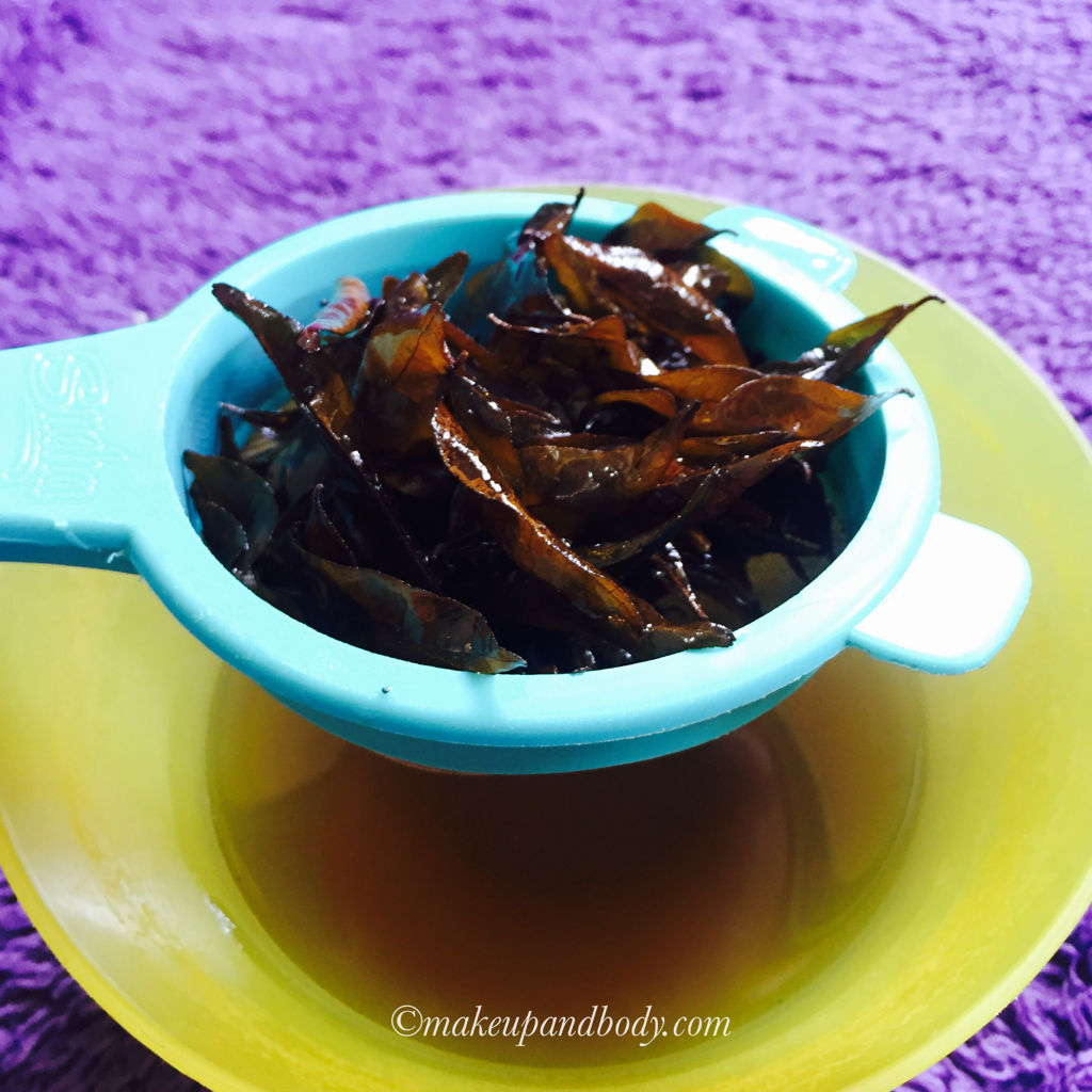 Note: Due to the natural constituents of the leaves, your hair may feel a little sticky which is absolutely normal. If the stickiness is uncomfortable, wash your hair again with a herbal or mild shampoo to help reduce the stickiness. If you still see the curry leaves particles in your hair? Don’t worry. Once your hair dries, you will be able to comb out all the extra particles of curry leaves from your hair. Happy!!
